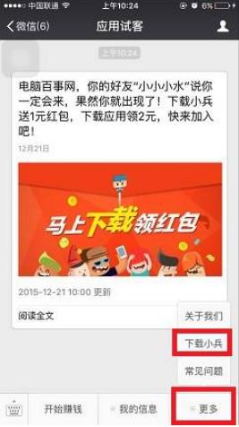 2,下载安装赚钱软件。关注以后,你会得到1元的现金奖励,点击左下角的“开始赚钱”或者直接点击右侧,选择“下载安装试客小兵软件”,请按照要求去做,并且根据系统的指示去设置。