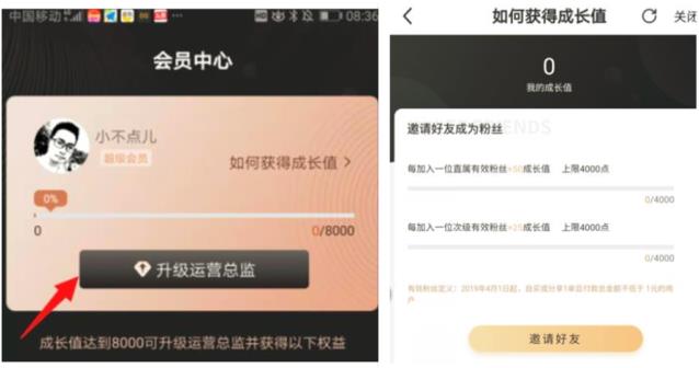 总监规则:推广好友,直接推广有效好友满80人,间接推广有效好友160人,就可以成为运营总监。(注意:需要自买或者分享出1单,并且付款金额大于1元,才算有效会员),满足这个条件后需要手动点一下升级就可以。