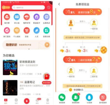现在新用户注册喜马拉雅极速版送0.5元,前3天每天听30分钟奖励1元,听书有进度圈,每转1圈都可获得随机金币奖励,10000金币=1元,12元以上提现无限制,小额提现有一些条件,在家宅着,邀请亲朋好友还是不错的。在喜马拉雅极速版上内容很多,像郭德纲的相声也是有的,还能听小说,笑话,评书,英语,历史,音乐等等吧,可以说是最简单的赚钱方式,看视频还需要手点一下,而这个平台可以连续听书,真的和挂机有点像哦。