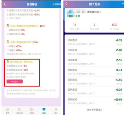 在开始推荐哆啦钻之前,小编在平台上进行过简单的任务操作以及推广,获得了一点小小的收益,同时自己也升级到团长。不过,对这个平台的收益,可以说还是有些不满意,不过玩还是可以玩,现在也趁早,升级团长的难度不大,大家可以试一下。