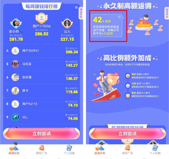 但是一个好友能为你赚到多少钱?只能说,邀请的每一个好友活跃越高,又是玩游戏能力很出色的话,一天的邀请收入是没有上限的,最不济就是妥妥的零收入。